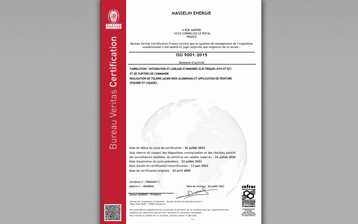 MASSELIN FABRICATION est certifié ISO 9001 depuis 1995 :